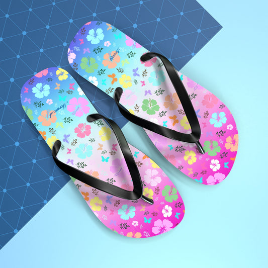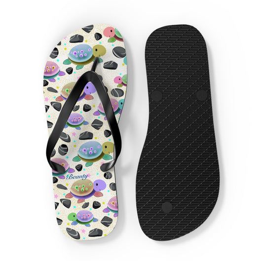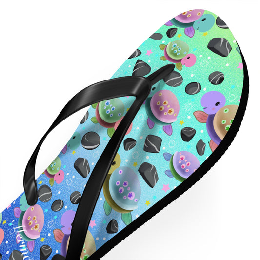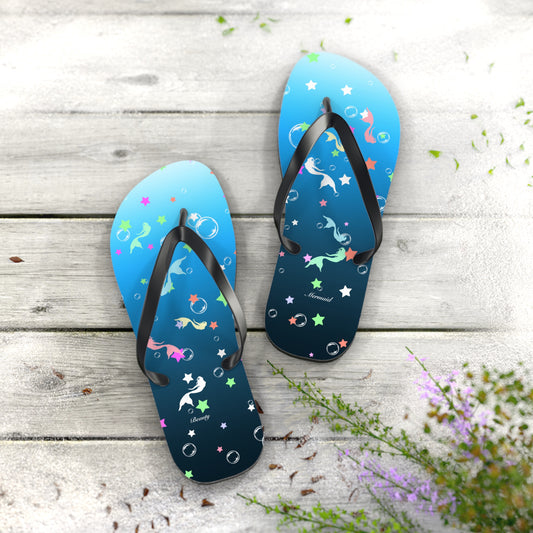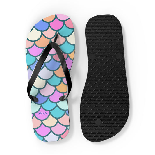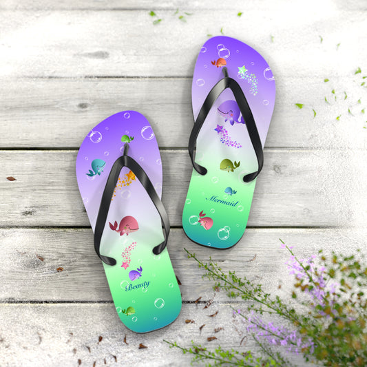 Make a splash with these BeautyMermaid Flip Flops! With vibrant sea animal patterns and backgrounds, these flip flops will add some fun to your summer wardrobe. Perfect for beach days and pool parties, these flip flops let you channel your inner mermaid. Don't just walk, flip and flop in style!