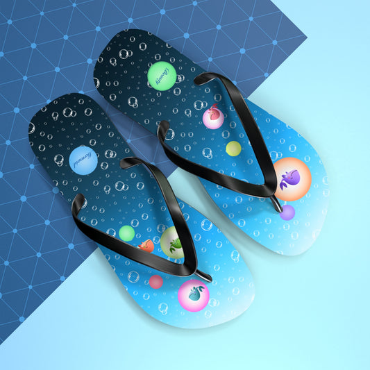 Whales Bubbles Deep Blue Ocean Flip Flops