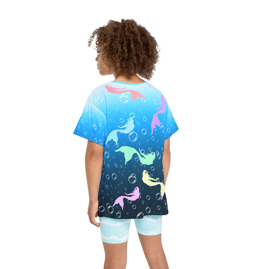 Colorful Mermaids in Blue Bubble Ocean Kids Sports Jersey