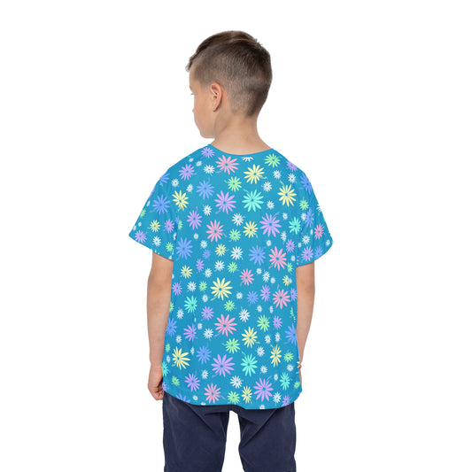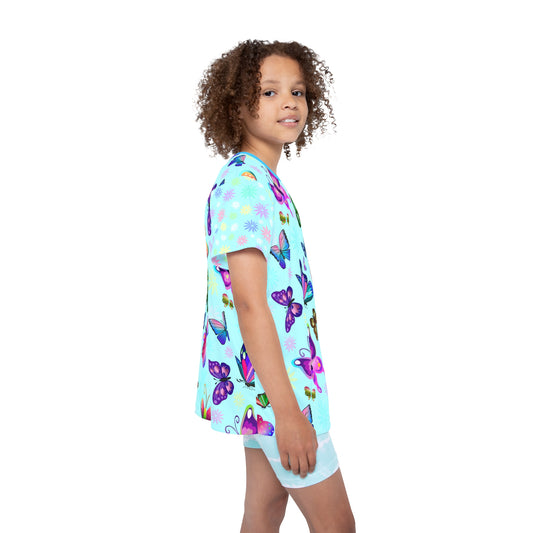 Light Blue Butterfly Flowers Kids Sports Jersey
