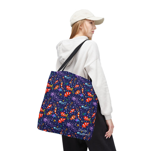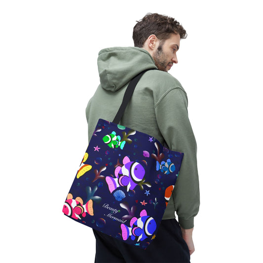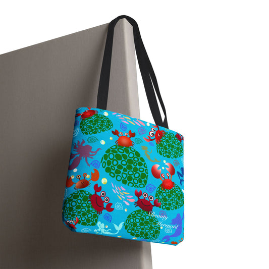 Carry your essentials in style with our BeautyMermaid Tote Bags. With vibrant patterns and oceanic themes, these bags are perfect for bringing some fun to your everyday look. Plus, the various background colors feature playful ocean animals, making it a unique statement piece.