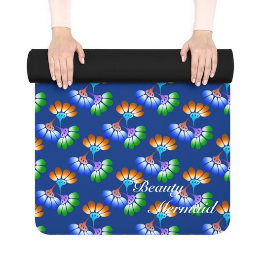 Shiny Floral Blue Yoga Mat