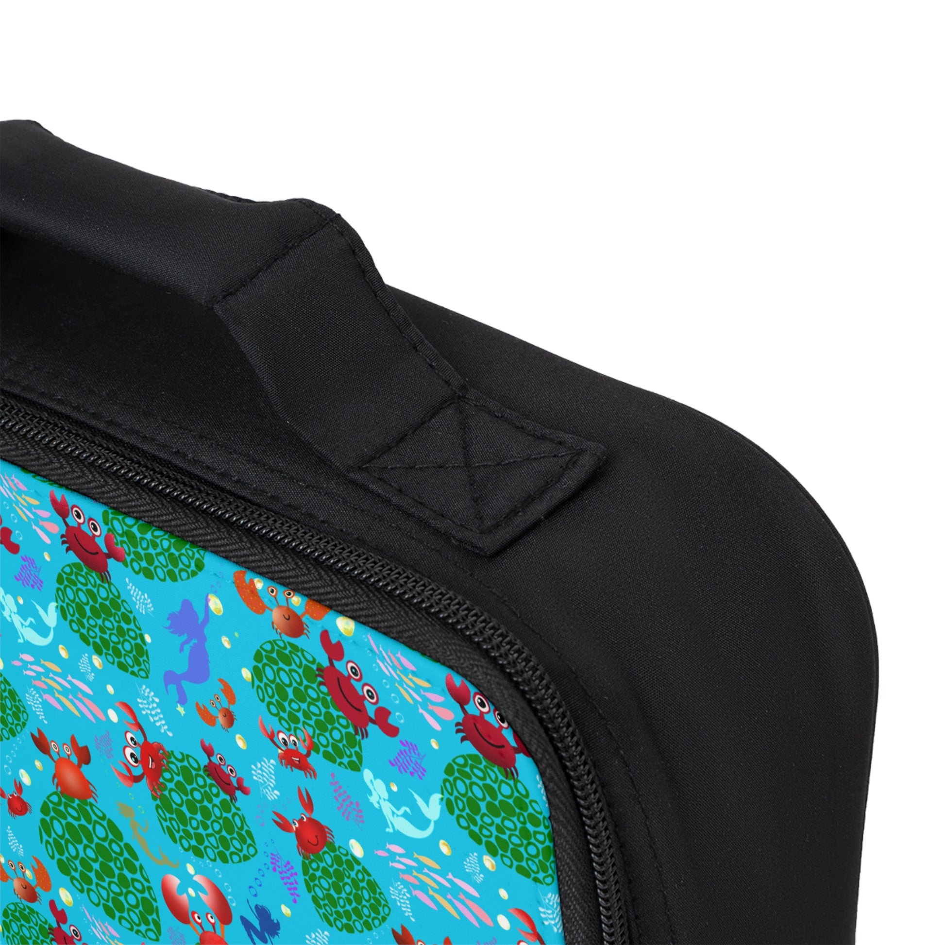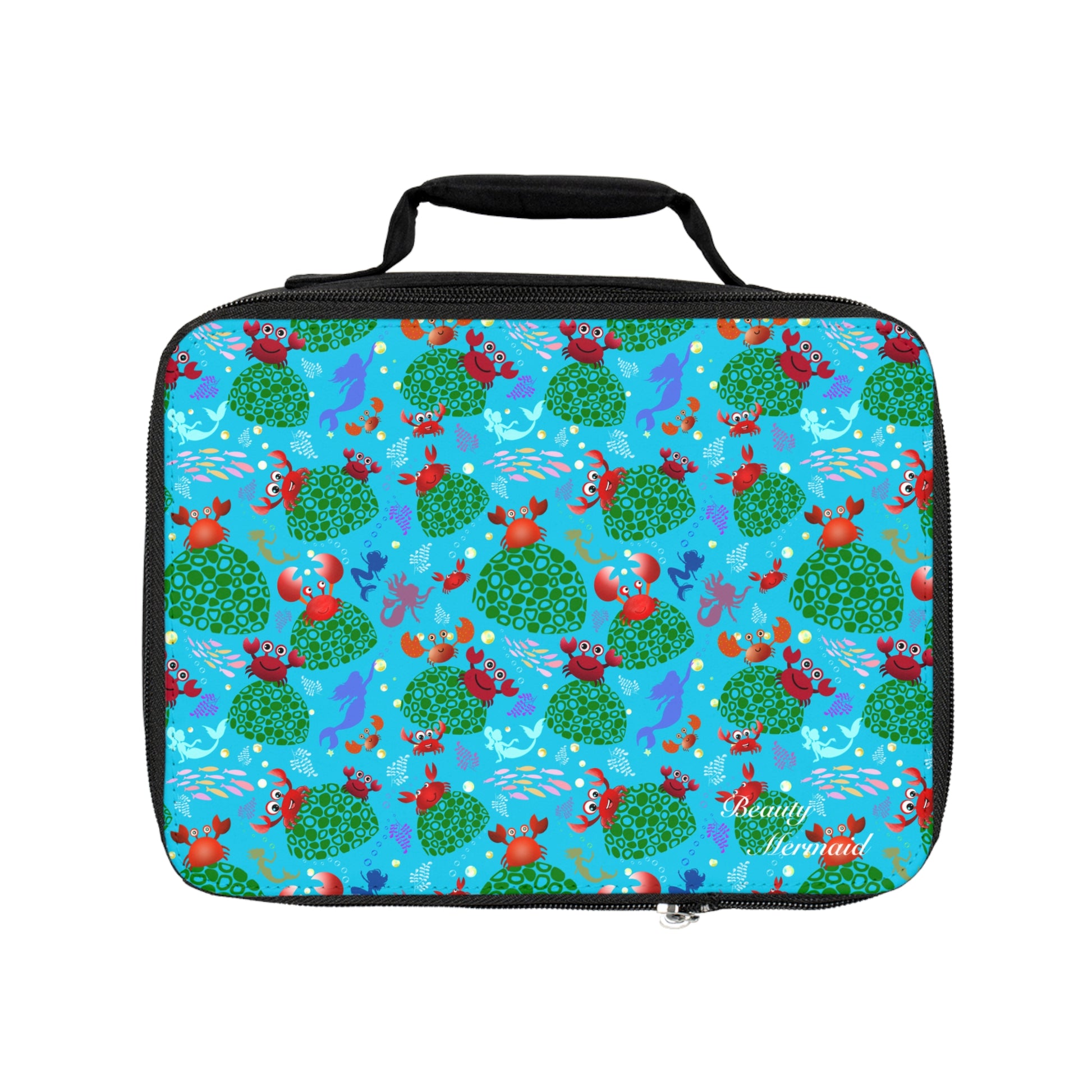 ake your lunch on an adventure with our adorable Crabs with Mermaids Lunch Bag! This blue ocean theme brings a sense of freshness and happiness, making it ideal for beach vacations, picnics, and outdoor activities. It's a great way to show off your style while keeping your food fresh and secure. Perfect for kids and adults alike to enjoy a happy meal time with this fun and versatile bag.