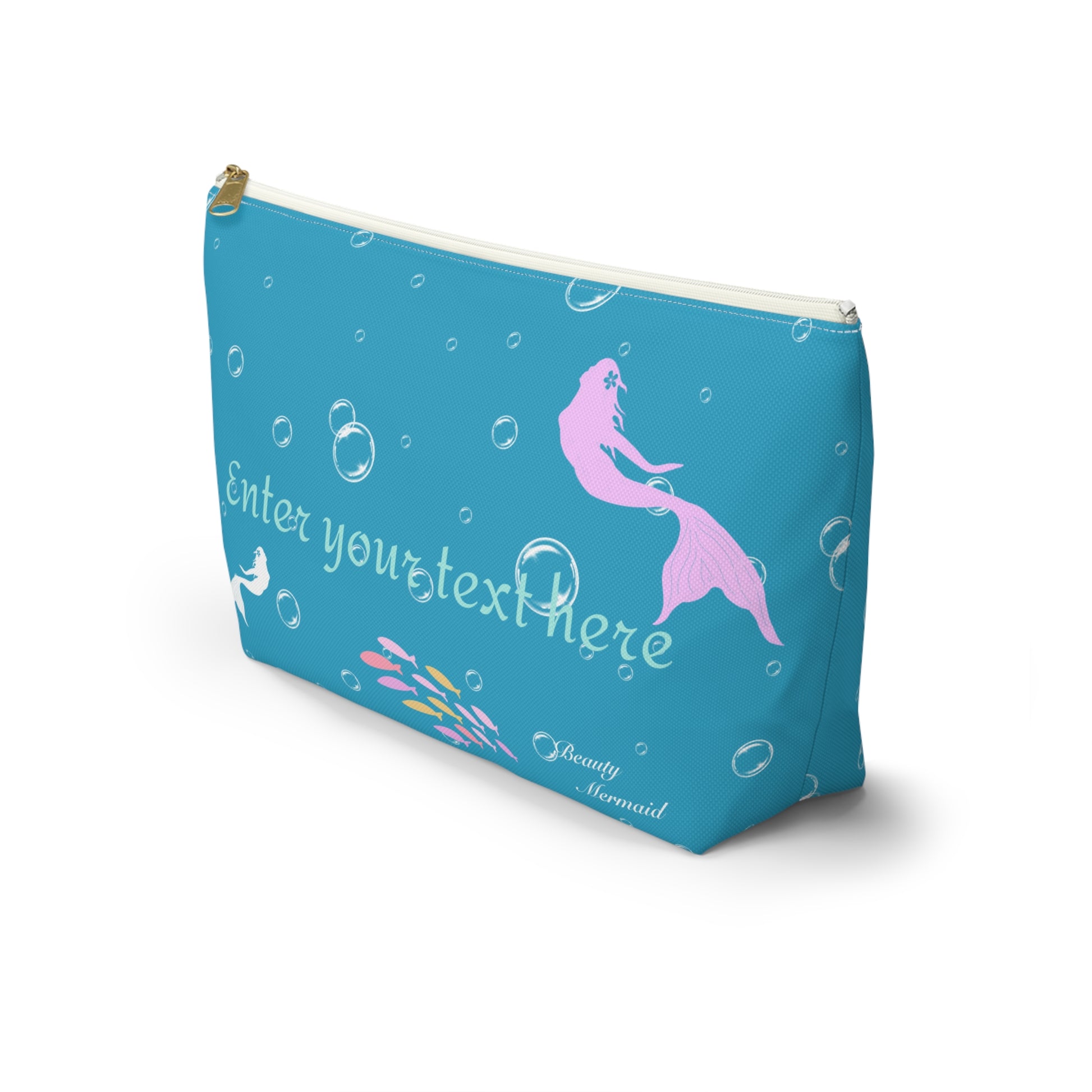 Show your love for the ocean with the Personalized Mermaid Blue Ocean Pouch. Perfect for storing pencils, cosmetics, or travel essentials, this durable t-bottom pouch combines style and functionality. Ideal for everyday use or holiday adventures, it lets girls express their passion for marine life while keeping their essentials organized and secure.